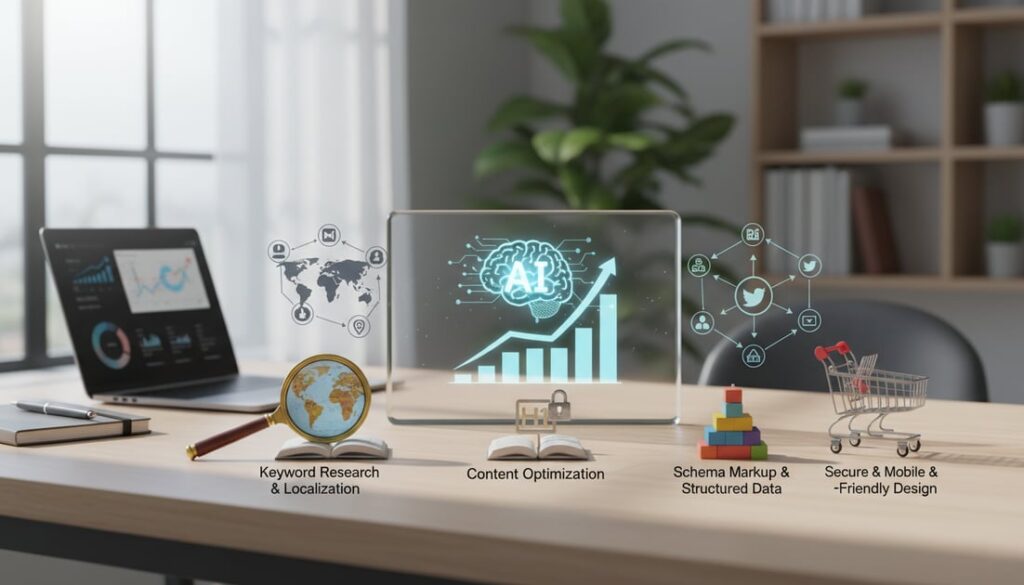 The five strategies outlined above represent your operational framework for maintaining search visibility as AI platforms reshape UK ecommerce discovery. Contextual metadata, structured product content, visual optimisation, predictive analytics, and authentic human expertise form interconnected components that address both traditional rankings and generative engine citations simultaneously.